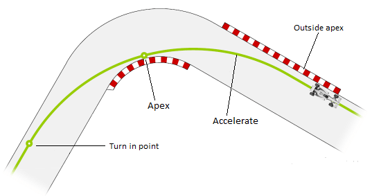 This line minimizes speed loss by staying as straight as possible and carrying the most speed through the corner.